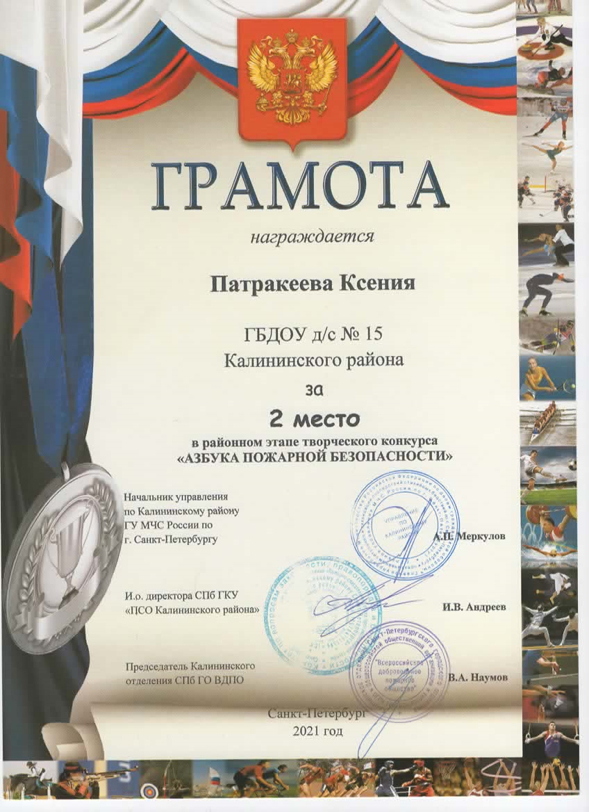 Победитель конкурса педагогических достижений в Калининском районе Санкт - Петербурга - номинация "Лучший педагог физической культуры - ДОУ"