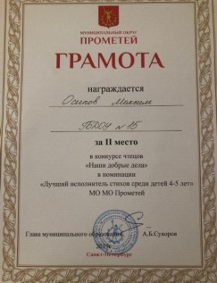 Участники: (старшая группа 5 - 6 лет): Осипов Максим